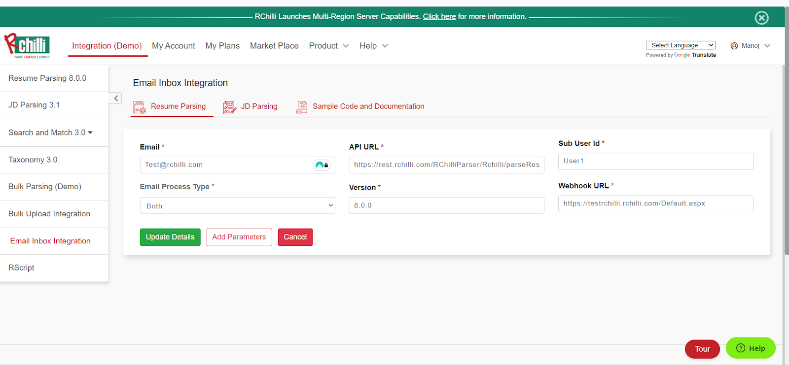 For more information, visit the Email Inbox Integration. For setup validation or troubleshooting, contact support@rchilli.com