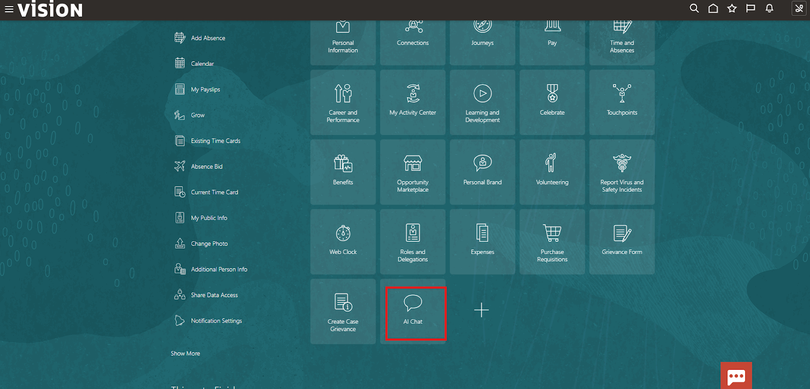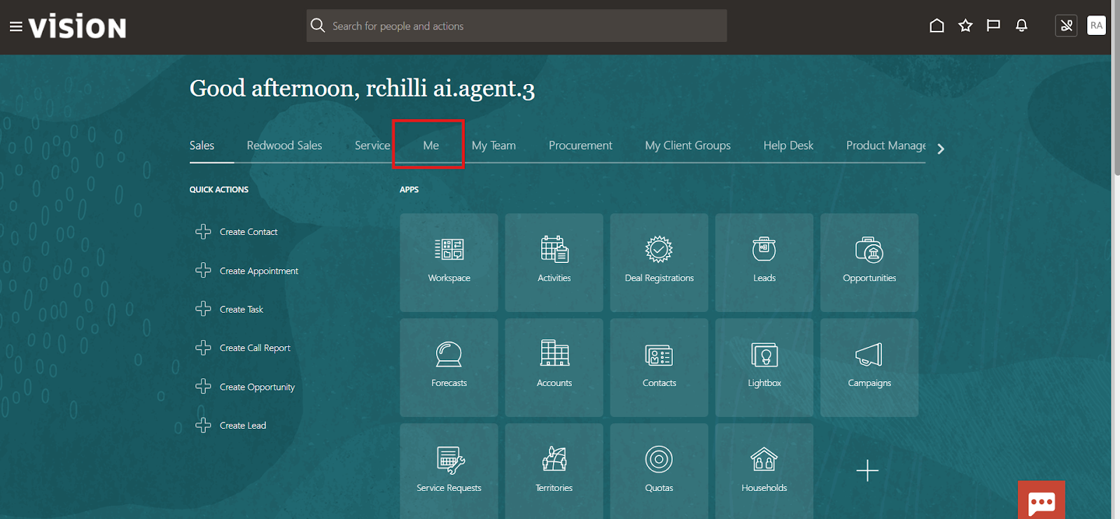 - From the Home page, navigate to the Oracle AI workspace by selecting Me → AI Chat or Me → AI Studio (depending on your system configuration).
