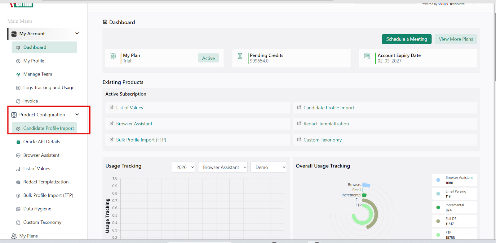 - Click on Candidate Profile Import.