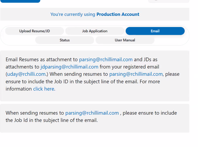 - Enter the Job ID in the subject line if want to map any candidate with any Job.