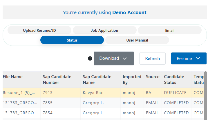 Email Integration allows you to upload resumes into SAP by sending them from a registered email address.