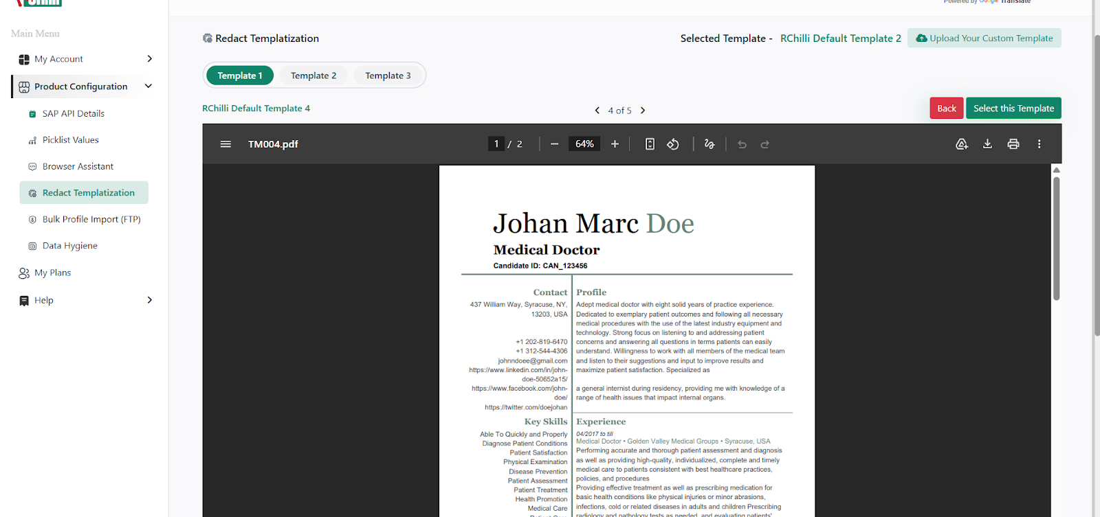 Yes, users can configure redaction settings and upload resumes in template format through the SAP Browser Extension.