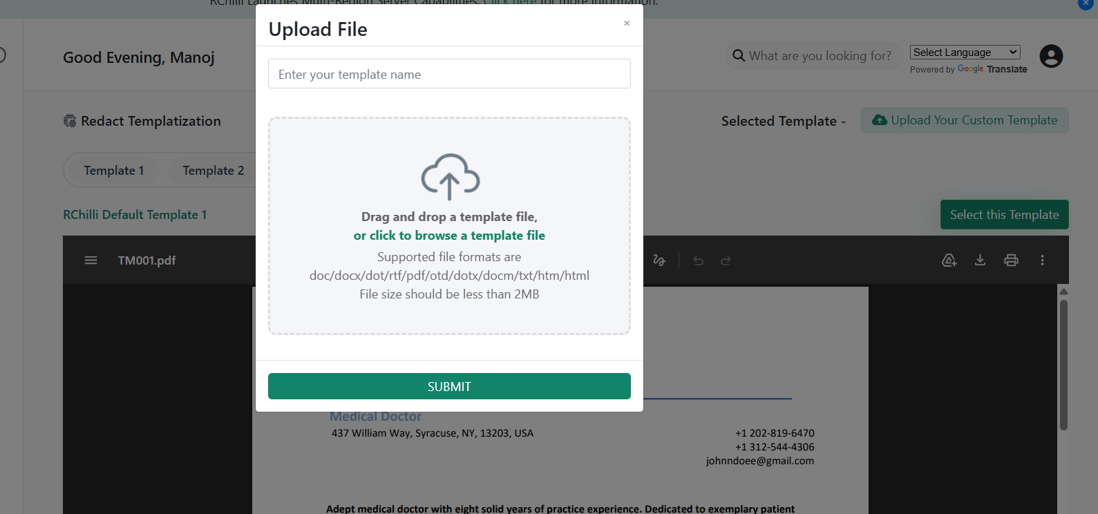 Yes, you can upload your own custom template from the Redact Template Settings page.