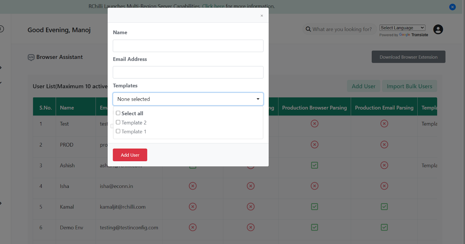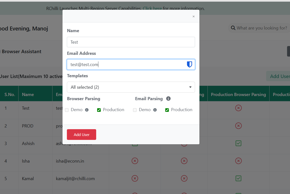 - Select Browser Parsing and Email Parsing options as needed.